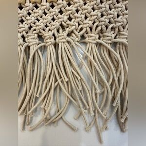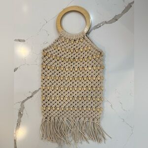 Macrame beach bag with wood, beading, design and wooden circular handles boho