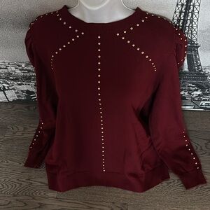 Macy’s Studded Embellished Puff Sleeve long sleeve Sweater burgundy Sz 1X