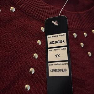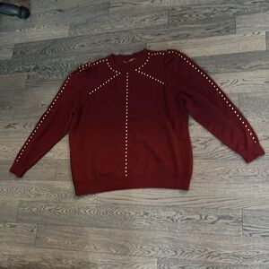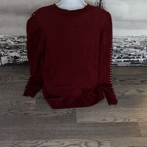 Macy’s Studded Embellished Puff Sleeve long sleeve Sweater burgundy Sz 1X