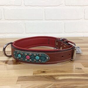 Mad Cow genuine leather jewelry dog collar handmade red pink turquoise studded