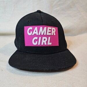Adjustable snapback cap with pink rubber Gamer Girl patch.