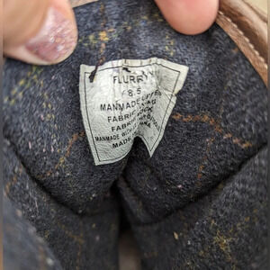 Rubber duck bottom, fabric lined leather on the top, lace up front, back zipper.
