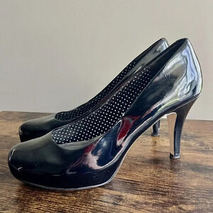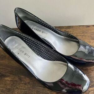 Madden Girl| Getta Pumps Slip On Black Patent Faux Leather Round Toe Size 9 - VG