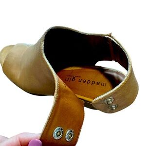 Madden girl chunky heel shoes with peek-a-boo toe , Tan color, size 7