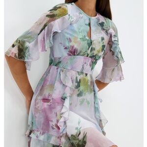 Maddiey Waterfall Ruffle Mini Dress Grey
