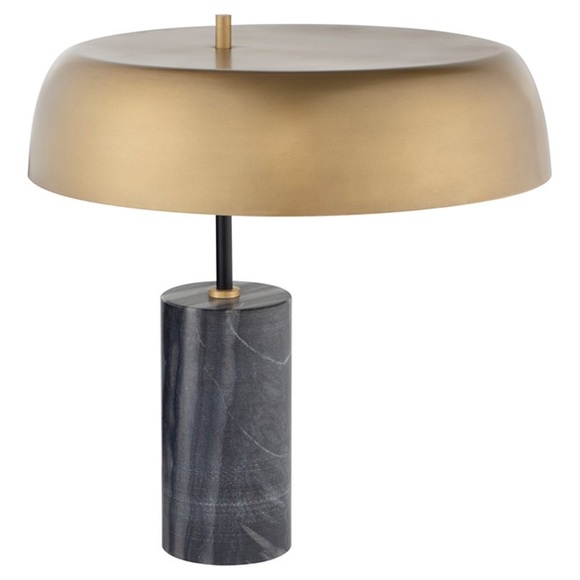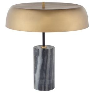 The Maddox Table Lamp evokes a unique sculptural aesthetic. A cool cylindrical marble base supports an offset brass shade blending rich vibrant materials with function and form. Each piece of marble is expertly crafted out of a unique piece of natural stone, creating beautiful variations and one-of-a-kind details.