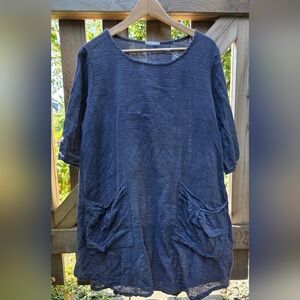 Made In Italy Linen/cotton Blend Blue Tunic With Pockets. MED.