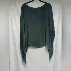 This beautiful dark gray blouse is very forgiving and flattering at the same time.