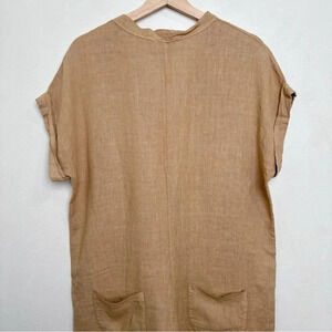 Made In Italy Womens Medium Linen Vneck Button Tan Romper