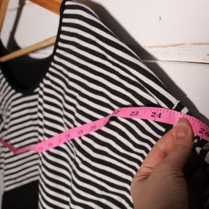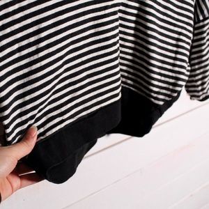 Up Cycled and hand made in California. This top features a clean B&W stripe front with a Black Back.