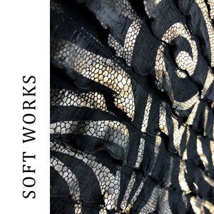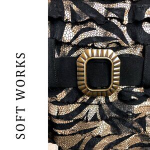 Made in Canada metallic gold & black swirl pattern layered 3/4 sleeve top M