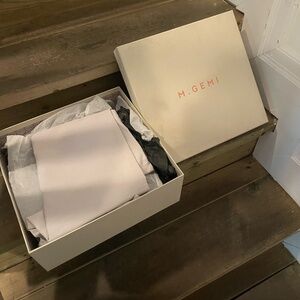Size 39.5/fits like size 8.5 or 9 for a regular width or narrow foot. Leather boots made in italy. Excellent quality and in excellent condition. I have wide feet so after wearing them once I realized I would not be comfortable in them. They look very cool. They come in their original packaging, with cloth bag from M Gemi that was never used so they look like new.