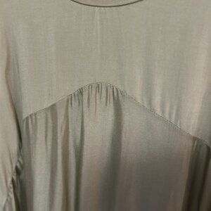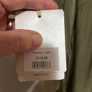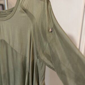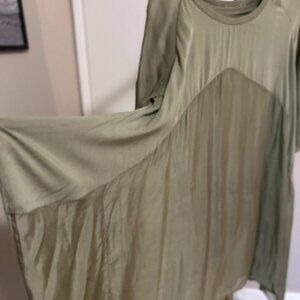 Light as Air! Feels wonderful on. Lined to past the hips in a cotton jersey with a beautiful Olive colored silk and viscose top.