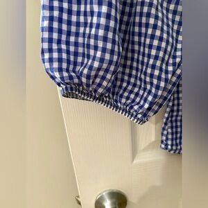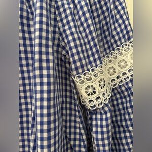 Made in Italy blue gingham crochet long sleeve top size Large shirt