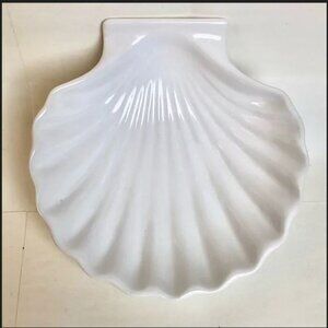 A white ceramic seashell perfect for serving snacks or treats, or for storing keys, jewelry, or other trinkets.