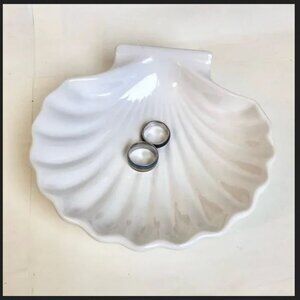 🍉Made in Japan Oven Safe Dish Seashell Jewelry Trinket Tray Nuts dish White