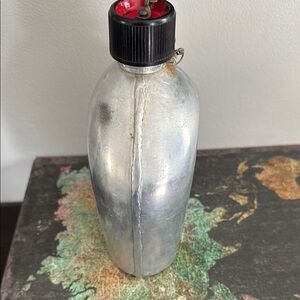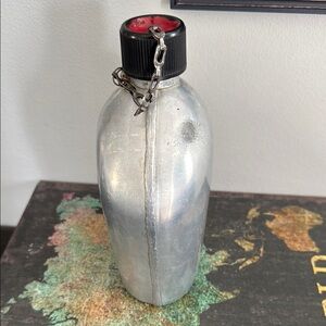 Durable silver metal canteen. Vintage made in Japan. Does not leak. Lid attached to canteen.