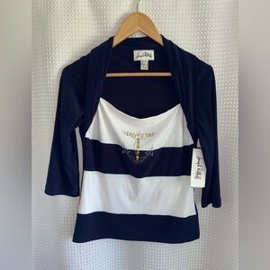 Made in 🇨🇦 Joseph Ribkoff NWT Nautical Rhinestone Anchor Top Size 8
