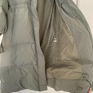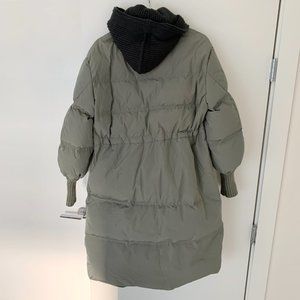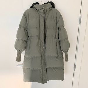 Made in Korea Long olive hooded puffer down jacket XS-S