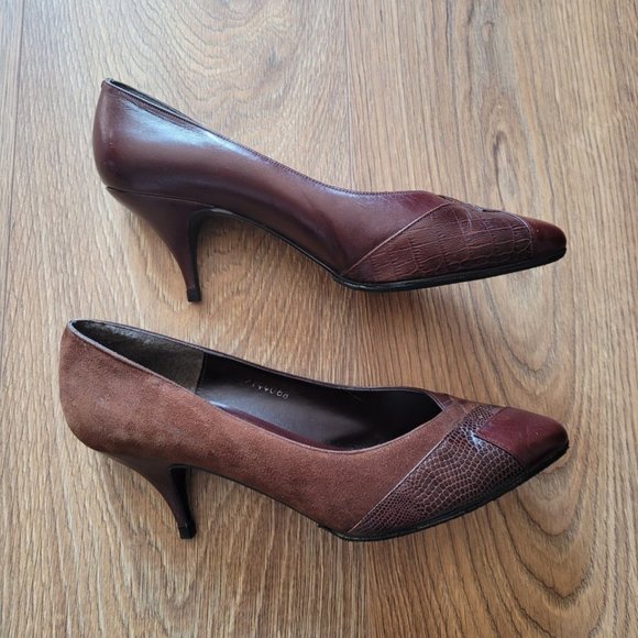 Made in Spain Vintage Nuova’moda brown leather & suede heels