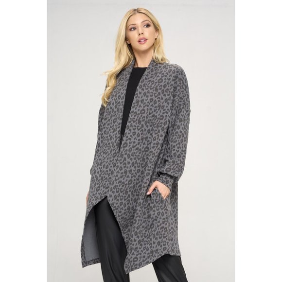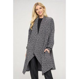 Animal Print Cardigan with Asymmetrical Hem With Side Pocket.