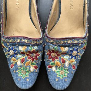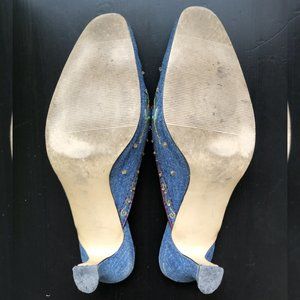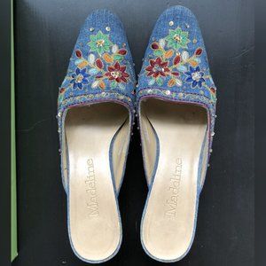 Madeline (Size 6) Denim Floral Embroidered (2") Mules
