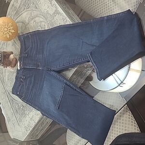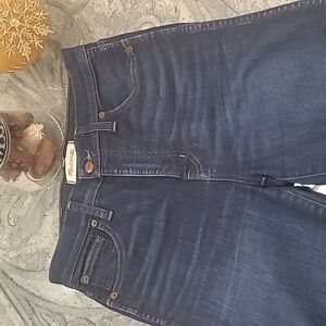 GORGEOUS! GREAT CONDITION LIKE NEW, Crafted from luxuriously soft stretch denim in a deep indigo wash, these high-rise jeans are touched up with crisp shadow creases and fading along the thighs.