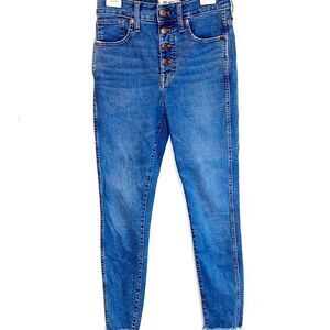 Madewell 10” High Rise Skinny Button Front Jeans Raw hem Womens Sz 26