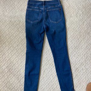 Front rise: 10"; inseam: 28 1/2"; leg opening for size 25: 9 3/4".