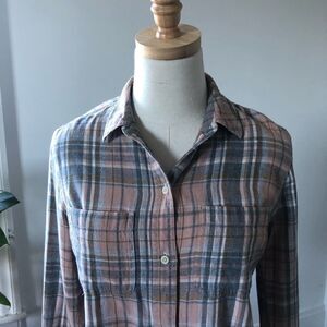 Madewell 100% Cotton Pink Grey Flannel Button Front XS