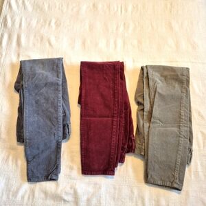 Madewell 3 pairs of corduroy size 26 skinny stretch pants, 1 gray, blue, maroon