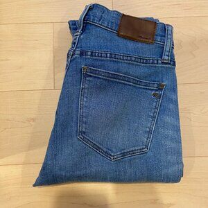 Item keywords: Madewell jeans, high-rise skinny, blue denim, women's jeans, distressed denim, frayed hem jeans, 26 petite jeans, fashion jeans, stylish jeans, comfortable jeans, casual wear, designer jeans, trendy jeans, ripped, distressed, casual streetwear.