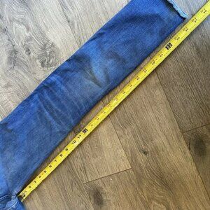 Front rise: 9"; inseam: 28 1/2"; leg opening for size 25: 9 3/4".