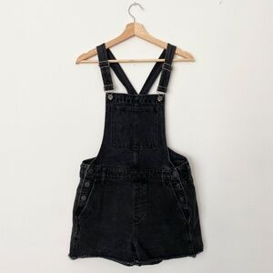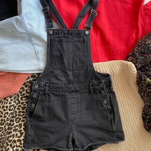 Black denim short overalls