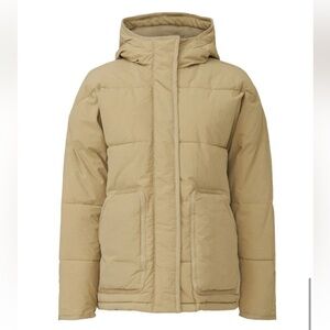Keep warm and cozy in this light, loose-cut puffer coat by Madewell, featuring oversized front pockets and an attached hood for practical winter style.