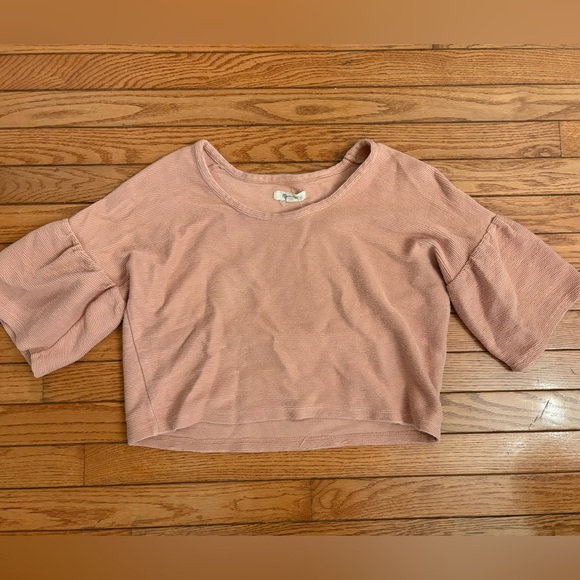 Pretty Madewell crop top with feminine bell sleeves and ribbed fabric. Size small.