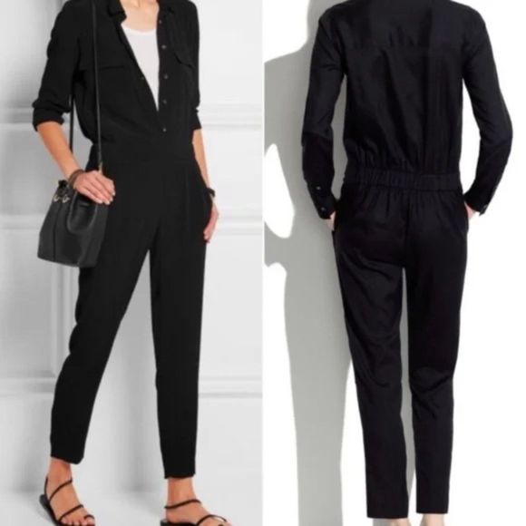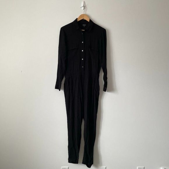 Madewell Black Long Sleeve Button Crepe One Piece Jumpsuit Sz S