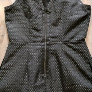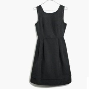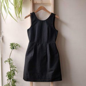 Black sleeveless Madewell dress w/woven pattern & little gold thread polka dots. A-line/fit & flare, hidden pockets on hips, black piping on sleeves/neckline. Size 2/S/XS. In excellent condition w/no flaws. From a smoke/pet-free home.
