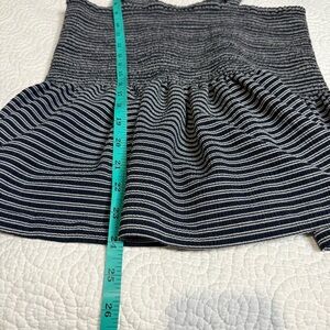 This sleeveless tank top by Madewell features a chic black and white striped pattern with a smocked bodice and a flattering peplum silhouette. The square neckline and wide shoulder straps add a touch of elegance, making it perfect for casual outings in warm weather.
