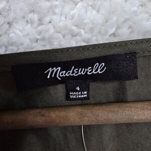 Madewell Brushed Ruched Front Top Womens 4 Green Long Sleeve Cupro V-Neck Earthy