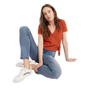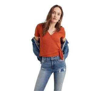 Madewell Burnt Orange “Texture & Thread” Wrap Side Tie Blouse