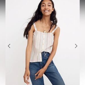 Madewell Button-Front Cami Tank in Textural Rainbow Stripe
