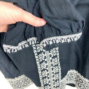 Madewell Camelia Bohemian Embroidered Tassel Tunic in Black and White. Intricate embroidery enlivens an easy cotton popover peasant top with boho-inspired details, while handmade tassels add extra pizzazz to the split neckline. Oversized fit.