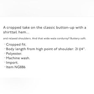 Shoulder to hem: 21 1/4” front