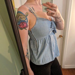 Very beautiful top in a baby blue, with a cutout on the front that features a cute little bow. Has a zipper on the side and I could not get it zipped all the way up. From Madewell, the quality is excellent but fits a little small. More like a 4 than a 6.
