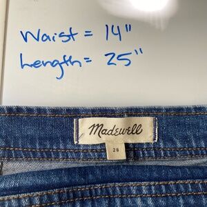 Madewell Denim Mid length Skirt. Front Slit with angle buttons -Sz 28