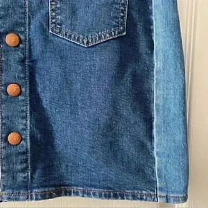 Madewell Denim Mini Skirt Button Front 2 Tone Blue Jean Size 26
