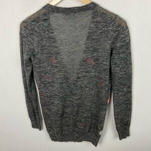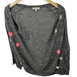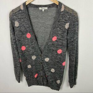 Madewell Fairweather Double Dot Linen Cardigan Sweater Grey Pink Size XS Boho