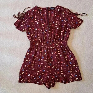 Madewell Floral Romper Burgandy Size 6 Carnations Short Flutter Sleeve