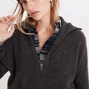Madewell GLENBROOK HALF ZIP WOOL BLEND SWEATER IN HEATHER GRAPHITE Sz XS